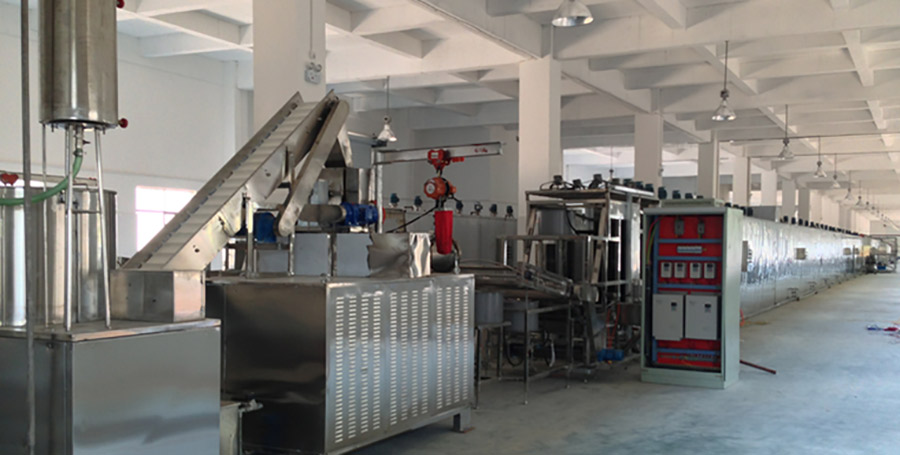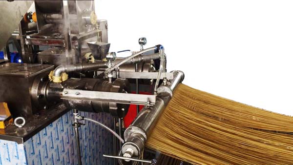 本生產線采用擠壓非膨化技術,通過高壓高溫使雜糧淀粉糊化并形成條狀;本設備適用于多種雜糧谷物,針對不同糧食的特性,只需調整相關的PLC參數,即可實現不同原料雜糧面條的生產。