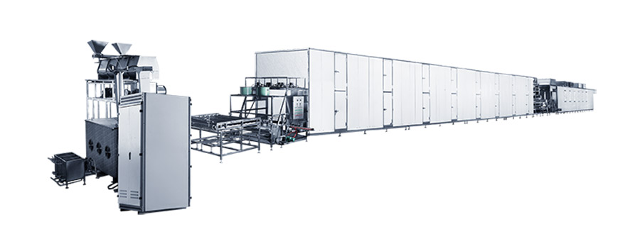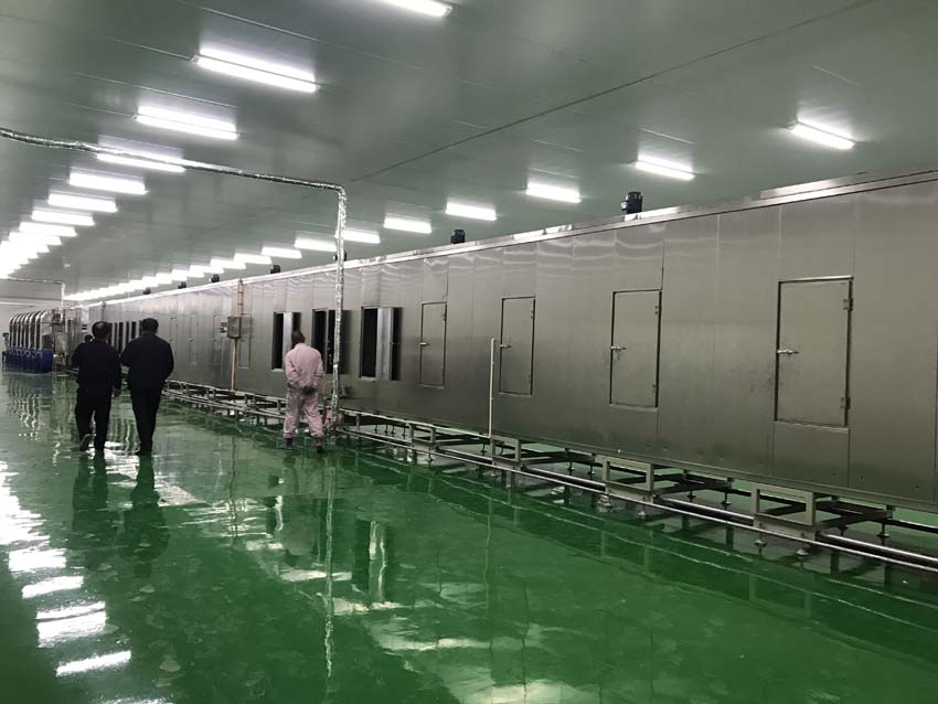 為了達到均勻的干燥效果, 干燥隧道依據干燥曲線自動調控;將干燥后的米線冷卻到溫室進行包裝,從而保證產品質量,便于保存;